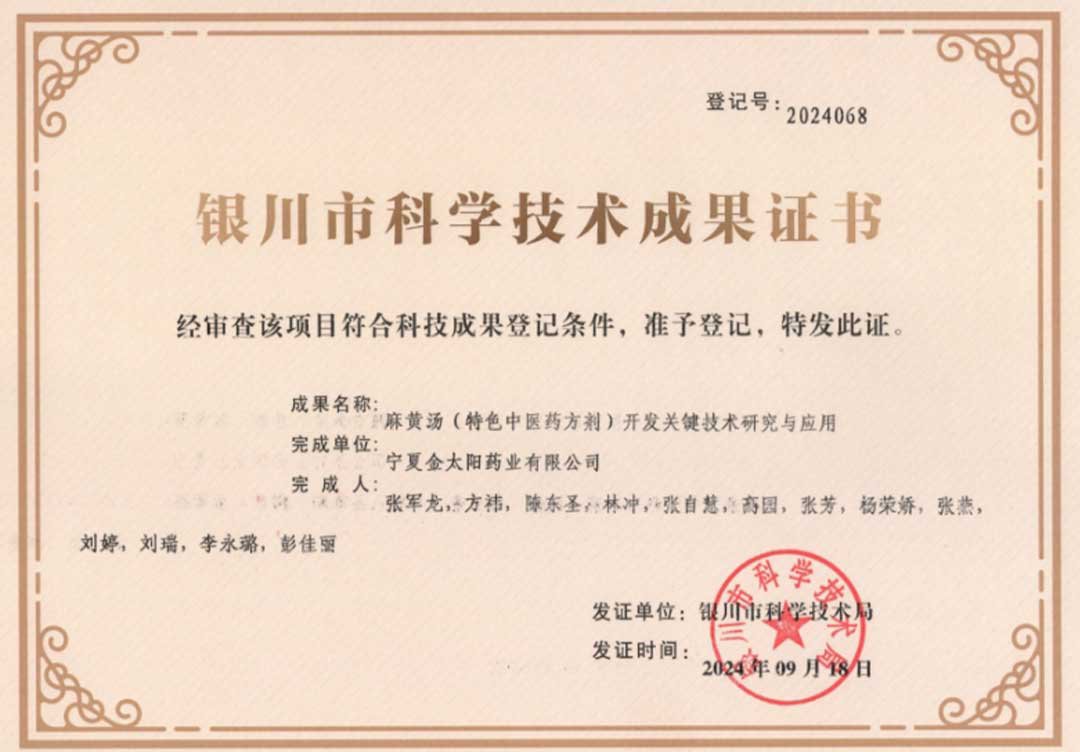 寧夏金太陽藥業有限公司 互聯網藥品信息服務資格證書 證書編號:(寧)-非經營性-2019-0005 …